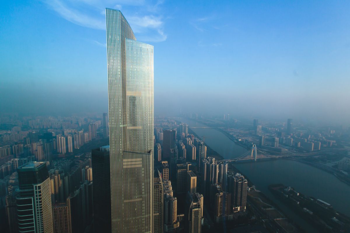 Platz acht der höchsten Gebäude der Welt wird von zwei ähnlichen Wolkenkratzern in China geteilt, die oft verwechselt werden. Das Guangzhou CTF Finance Centre befindet sich in Guangzhou im Perlflussdelta. Es wurde 2016 fertiggestellt und beherbergt Büros sowie ein Hotel. Wie viele andere Rekordhalter wurde auch dieses Gebäude vom Architekturbüro Kohn Pedersen Fox entworfen. „CTF“ steht für Chow Tai Fook, eine bekannte chinesische Juweliermarke.