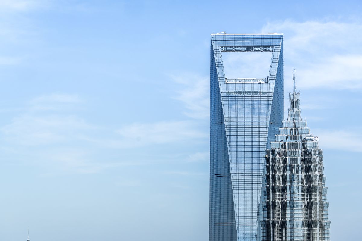 Das World Financial Center in Shanghai, mit einer Höhe von 492 Metern, ist das zweithöchste Gebäude der Stadt und eines der auffälligsten Wahrzeichen der Skyline. Besonders markant ist das große rechteckige „Loch“ in der Spitze des Wolkenkratzers, das ihm ein unverwechselbares Aussehen verleiht. Dieses architektonische Merkmal dient nicht nur als gestalterisches Highlight, sondern auch als funktionale Maßnahme, um den Winddruck zu verringern und die strukturelle Stabilität zu erhöhen. Das Gebäude, das 2008 fertiggestellt wurde, beherbergt Büros, Hotels und ein Einkaufszentrum und ist ein bedeutendes Symbol für Shanghais Aufstieg als globales Finanzzentrum.