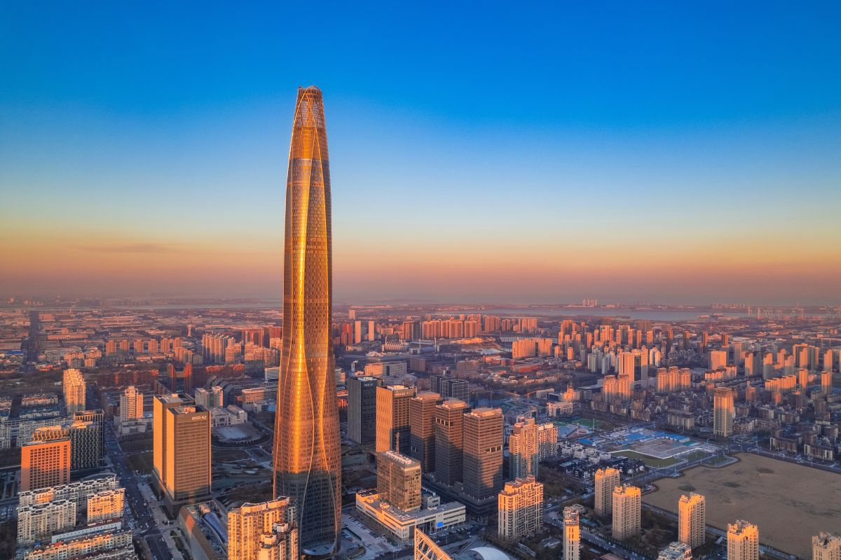 Das Tianjin Chow Tai Fook Binhai Center, der zweite Wolkenkratzer auf Platz acht der höchsten Gebäude der Welt, erreicht ebenfalls eine Höhe von 530 Metern und befindet sich in der chinesischen Stadt Tianjin. Das 2019 fertiggestellte Gebäude wurde vom US-amerikanischen Architekturbüro Skidmore, Owings & Merrill entworfen. Es beherbergt ein Hotel, Büros und Luxusapartments.