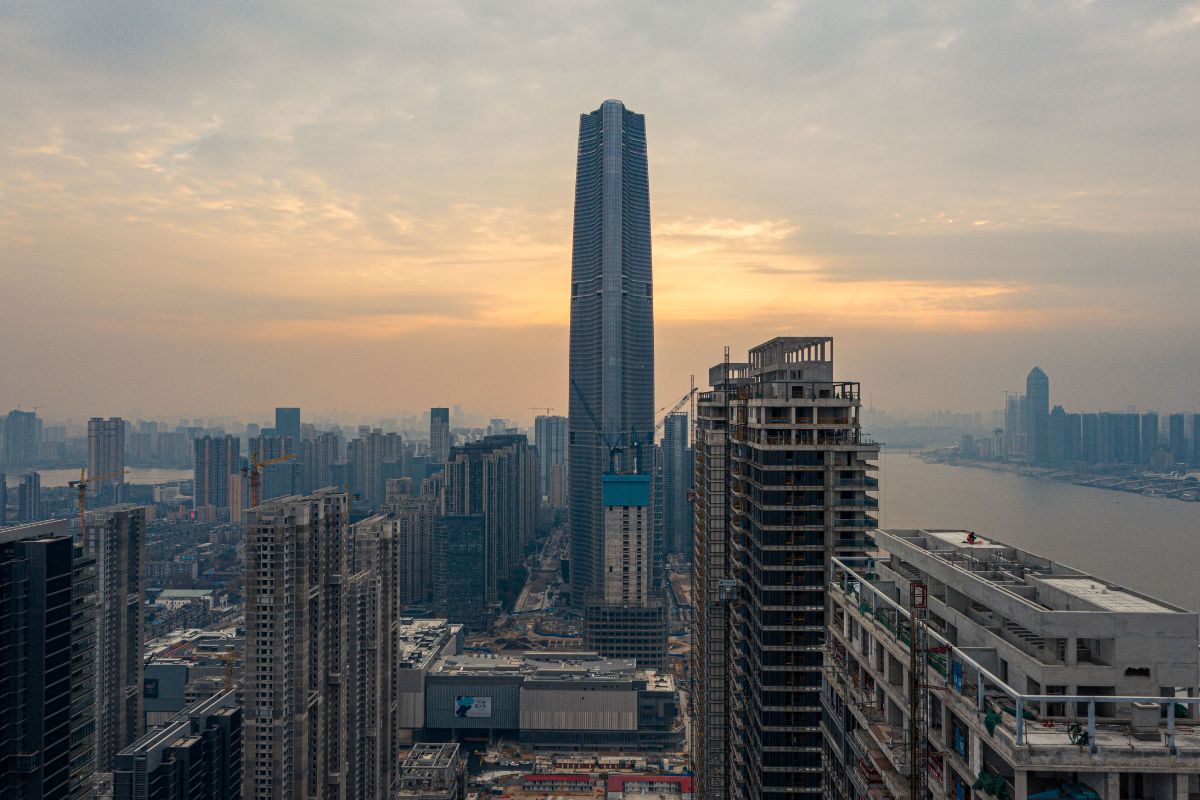 Das Wuhan Greenland Center, 2023 eröffnet, ist mit 476 Metern das höchste Gebäude in Wuhan. Ursprünglich mit 636 Metern und 125 Stockwerken geplant, wurde die Höhe nach einem Baustopp auf 101 Stockwerke reduziert. Der Wolkenkratzer kombiniert Büros, Luxuswohnungen und ein Hotel. Trotz der Änderungen bleibt er ein markantes Wahrzeichen und symbolisiert das wirtschaftliche Wachstum der Stadt. Besucher genießen von den oberen Etagen einen beeindruckenden Blick auf Wuhan und den Jangtse-Fluss.